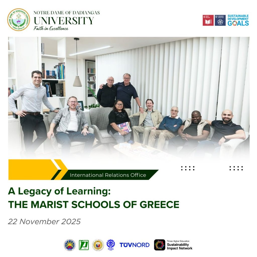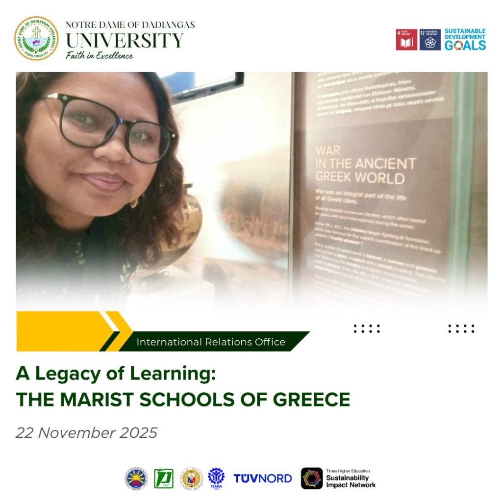 The Marist schools in Greece, particularly the 𝗟𝘆𝗰é𝗲 𝗟é𝗼𝗻𝗶𝗻 in 𝗔𝘁𝗵𝗲𝗻𝘀 (𝗣𝗮𝘁𝗶𝘀𝘀𝗶𝗮) and 𝗡𝗲𝗮 𝗦𝗺𝘆𝗿𝗻𝗶, stand as enduring symbols of educational excellence and Christian values — and served as the venue for the 𝟮𝟬𝟮𝟱 𝗠𝗮𝗿𝗶𝘀𝘁 𝗜𝗻𝘁𝗲𝗿𝗻𝗮𝘁𝗶𝗼𝗻𝗮𝗹 𝗖𝗼𝘂𝗻𝗰𝗶𝗹 𝗳𝗼𝗿 𝗘𝗰𝗼𝗻𝗼𝗺𝗶𝗰 𝗔𝗳𝗳𝗮𝗶𝗿𝘀 meeting, held November 10-15. 𝘿𝙧. 𝘼𝙡𝙛𝙞𝙚 𝙈𝙖𝙧𝙞𝙖 𝘾𝙪𝙨𝙩𝙤𝙙𝙞𝙤 of 𝗡𝗼𝘁𝗿𝗲 𝗗𝗮𝗺𝗲 𝗼𝗳 𝗗𝗮𝗱𝗶𝗮𝗻𝗴𝗮𝘀 𝗨𝗻𝗶𝘃𝗲𝗿𝘀𝗶𝘁𝘆 (𝗡𝗗𝗗𝗨) represented the 𝗣𝗵𝗶𝗹𝗶𝗽𝗽𝗶𝗻𝗲𝘀 𝗘𝗮𝘀𝘁 𝗔𝘀𝗶𝗮 𝗣𝗿𝗼𝘃𝗶𝗻𝗰𝗲 as a member of the council.