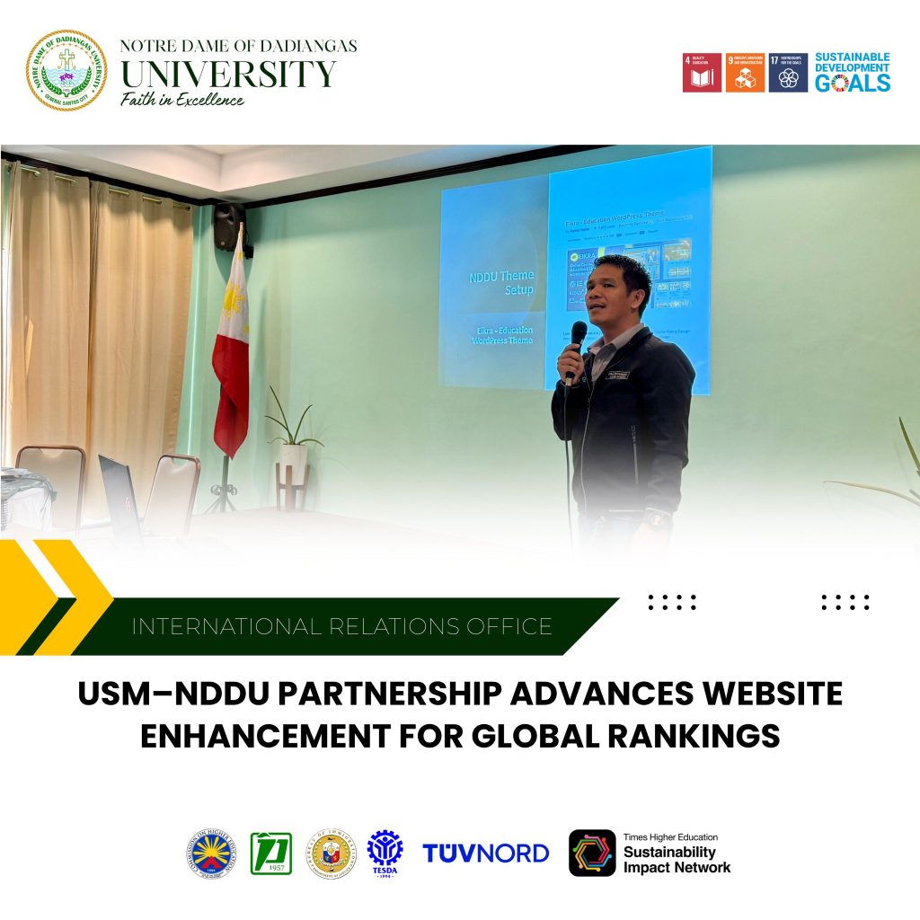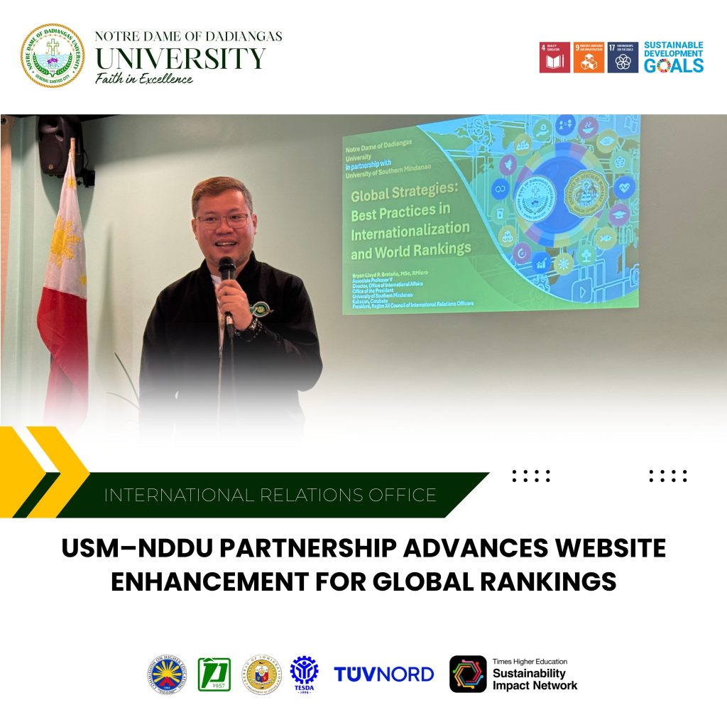 ๐๐ฟ. ๐๐ผ๐๐ฒ ๐. ๐๐ฎ๐ด๐ผ๐ฐ, ๐๐ฟ., ๐ฅ๐ก, NDDU Vice President for Academics, delivered the Welcome Address, emphasizing collaboration and digital readiness as key to advancing the universityโs internationalization goals. The overview of the activity was presented through an audio-visual presentation centered on the theme: โ๐๐ฉ๐ฆ ๐๐๐๐ ๐ธ๐ฆ๐ฃ๐ด๐ช๐ต๐ฆ ๐ช๐ด ๐ฐ๐ถ๐ณ ๐ฅ๐ช๐จ๐ช๐ต๐ข๐ญ ๐ง๐ณ๐ฐ๐ฏ๐ต ๐ฅ๐ฐ๐ฐ๐ณ โ ๐ข๐ฏ๐ฅ ๐ต๐ฉ๐ฆ ๐ง๐ข๐ค๐ฆ ๐ฐ๐ง ๐ต๐ฉ๐ฆ ๐ถ๐ฏ๐ช๐ท๐ฆ๐ณ๐ด๐ช๐ต๐บ.โ The presentation emphasized that the website is not just an information hub, but a living representation of NDDUโs identity, values, and aspirations as a Catholic, Marist, and Filipino university.